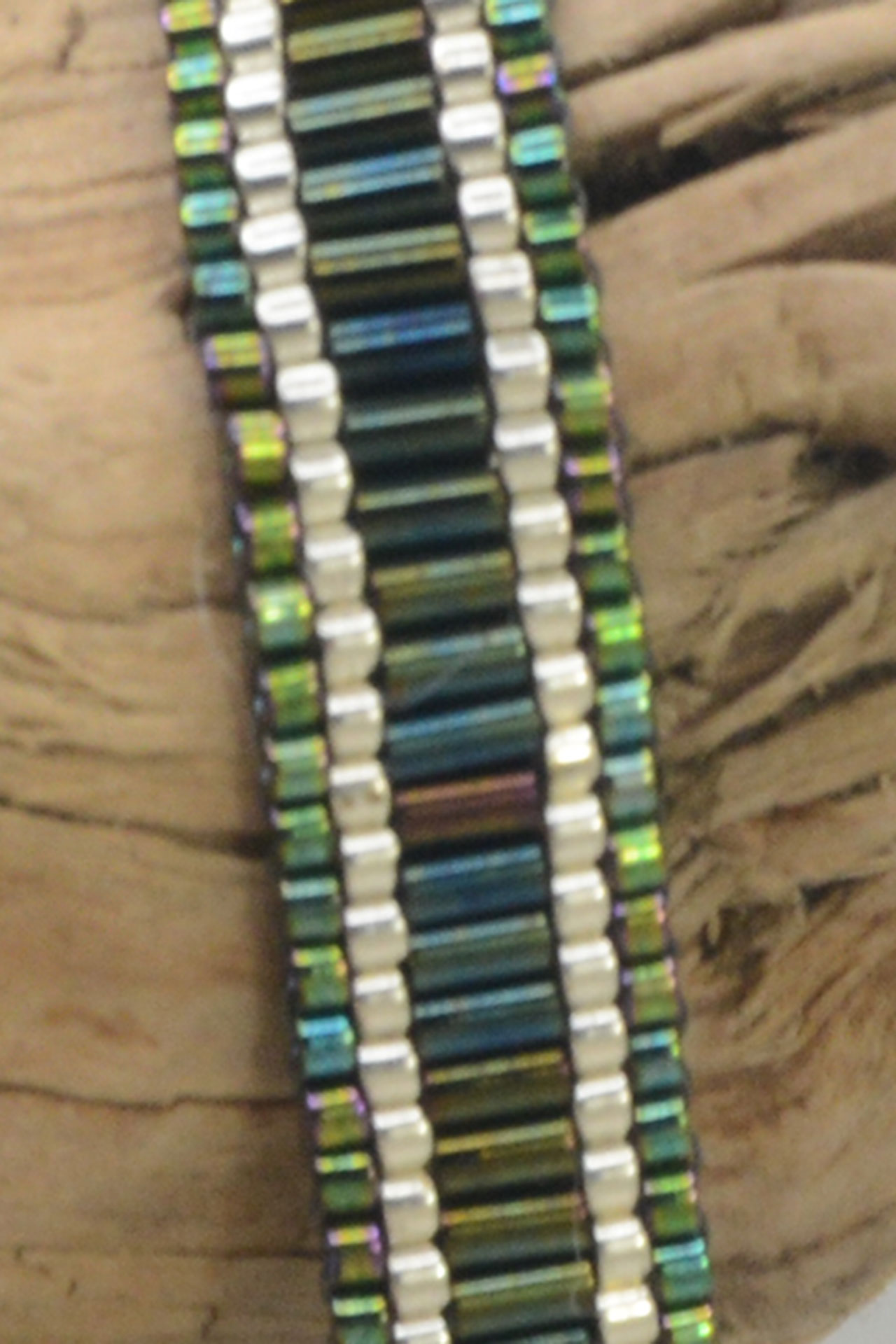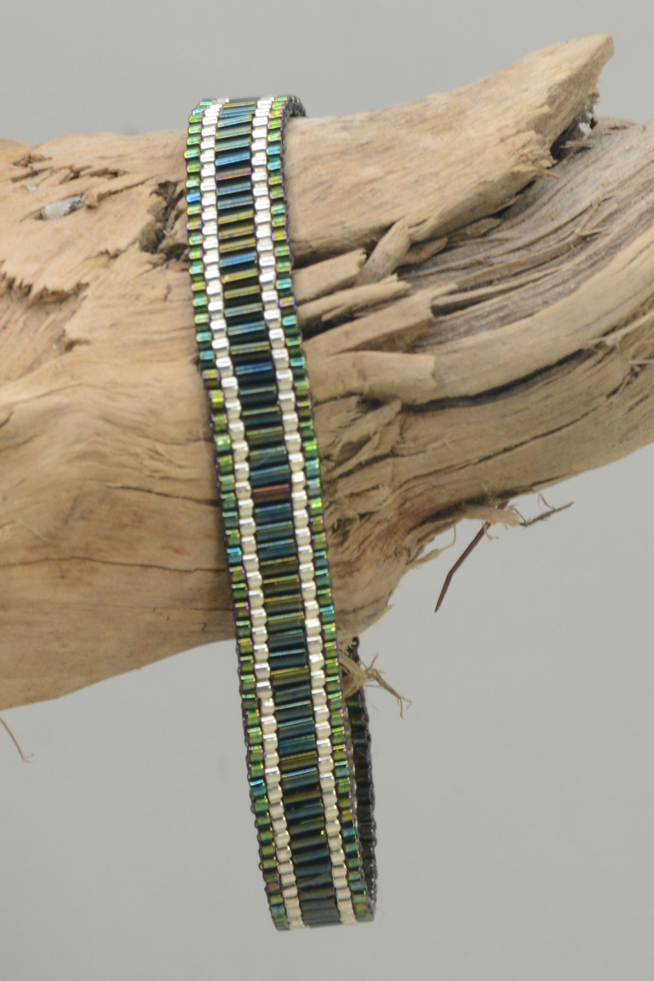 Dieses handgefertigte Armband ist mit japanischen Glasperlen gefädelt.