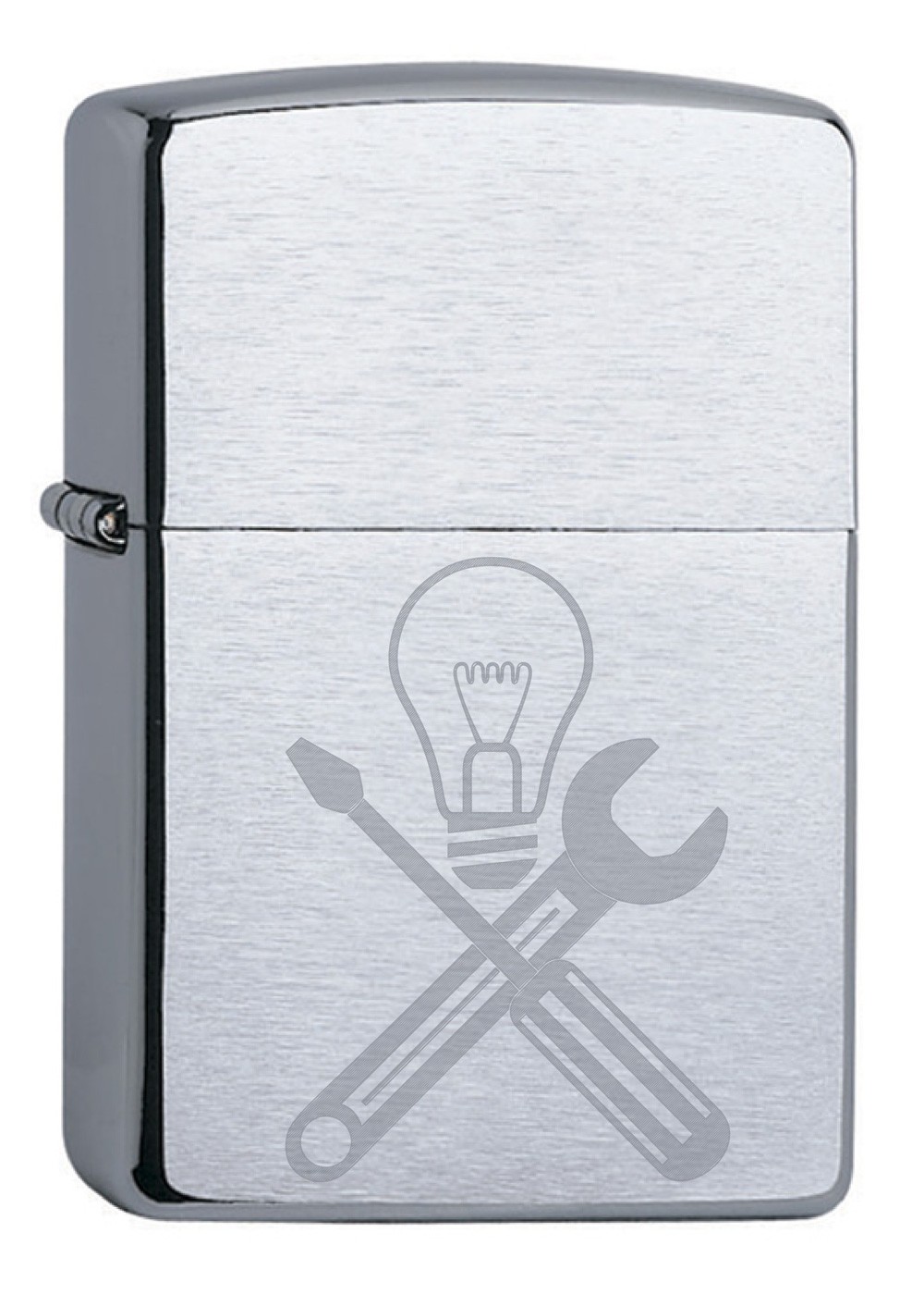 Ein graviertes Zippo mit "Elektriker" Motiv.