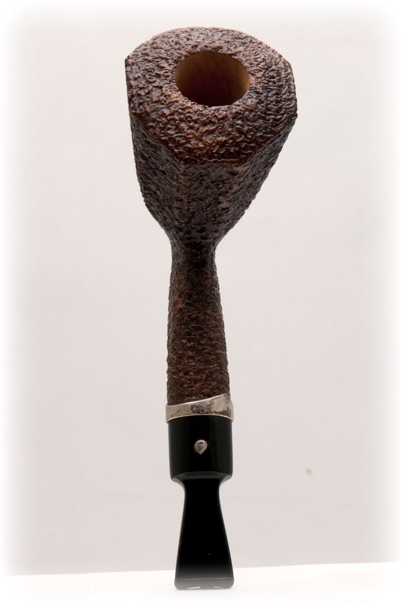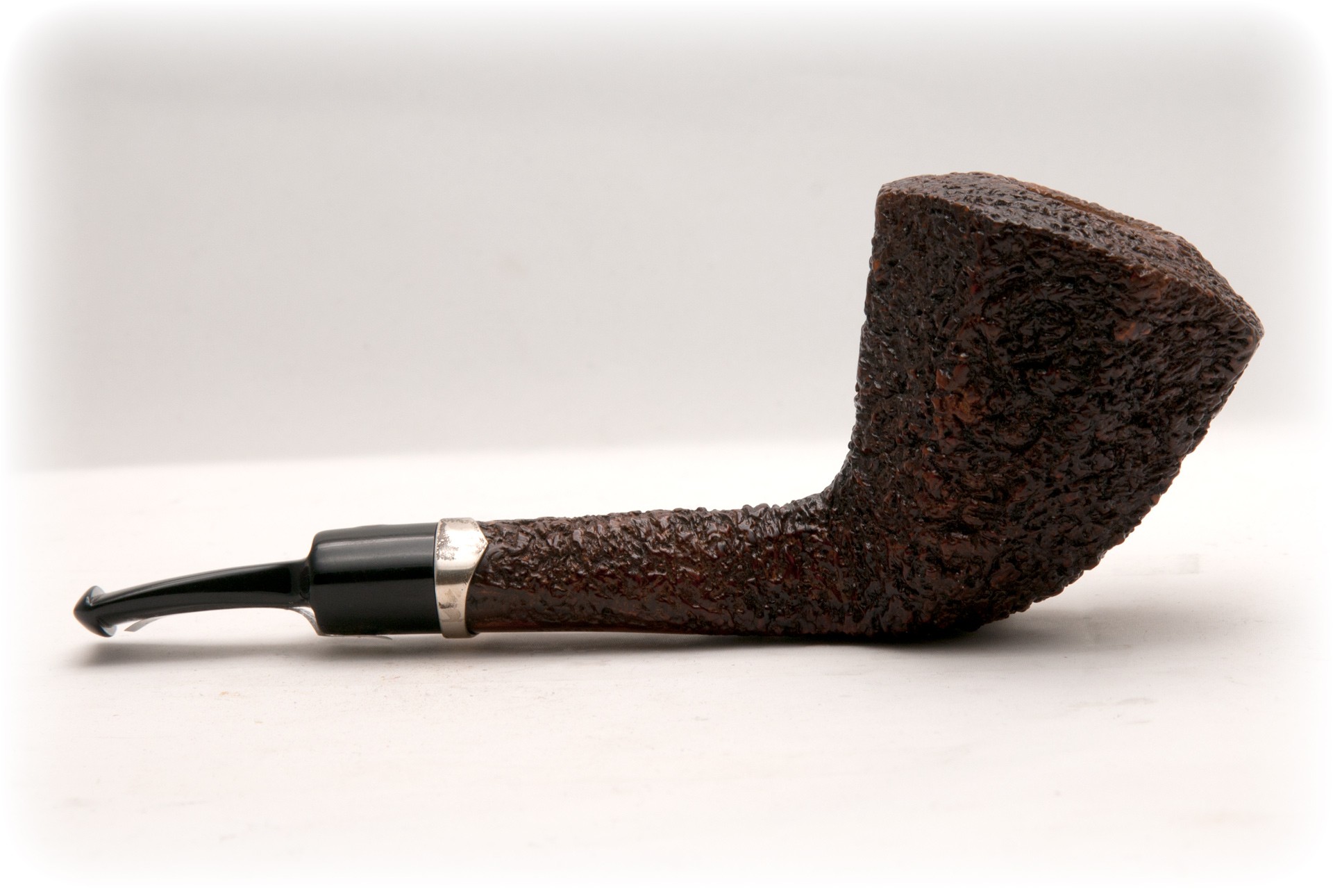 Eine gebogene Bruyèreholz-Pfeife, handgemacht von Lanatra aus Italien, mit Silberring am Holm.