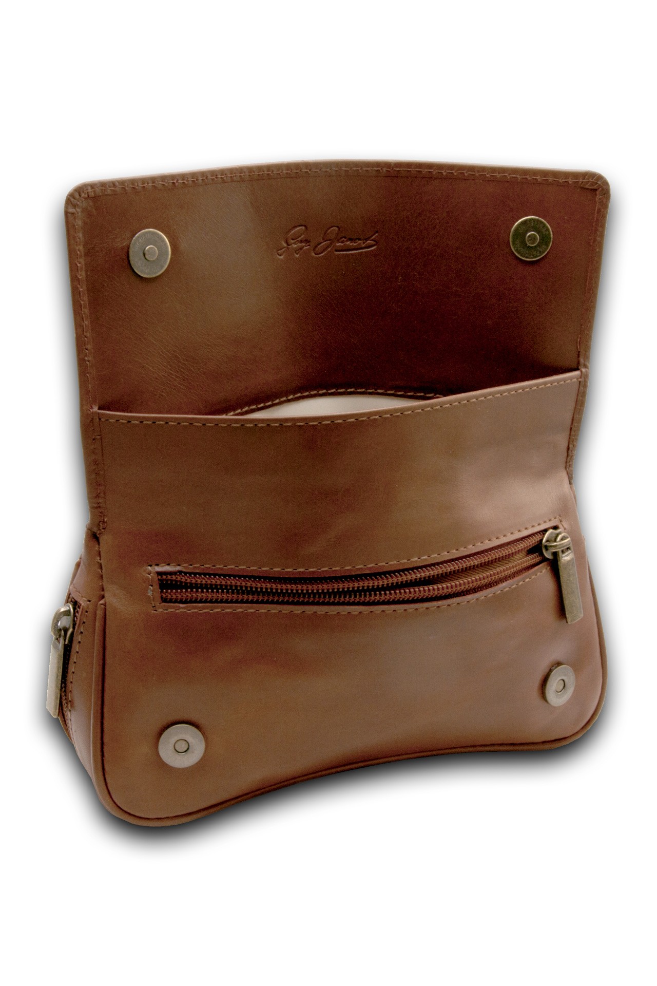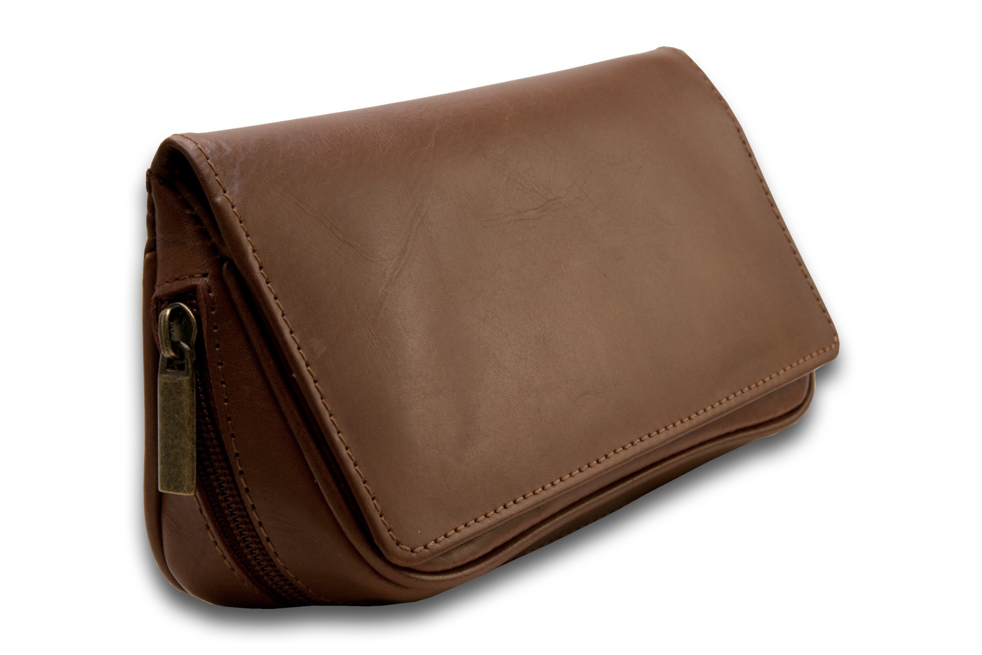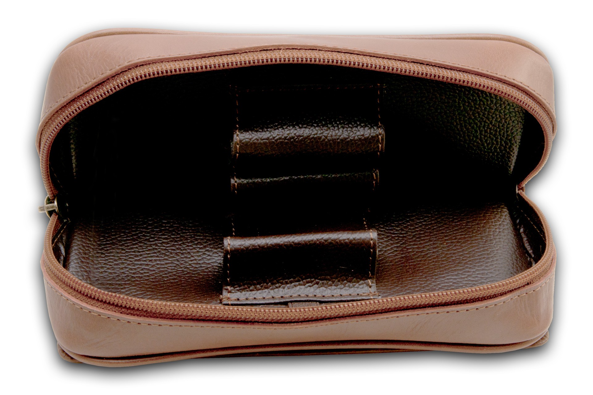 Echt Nappaleder Pfeifentasche für 2 Pfeifen mit einem Tabakfach und zusätzlichem Fach mit Reissverschluss.