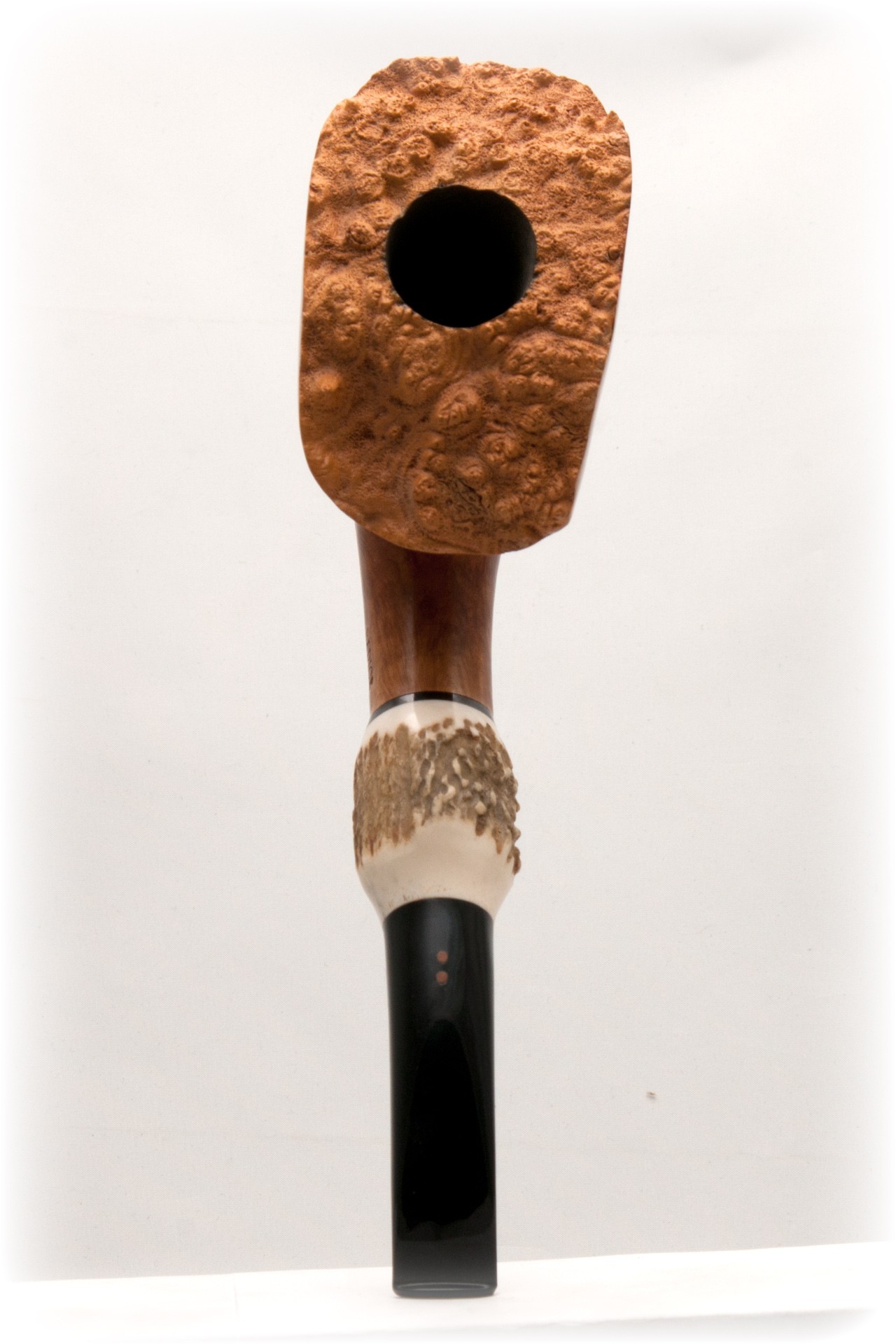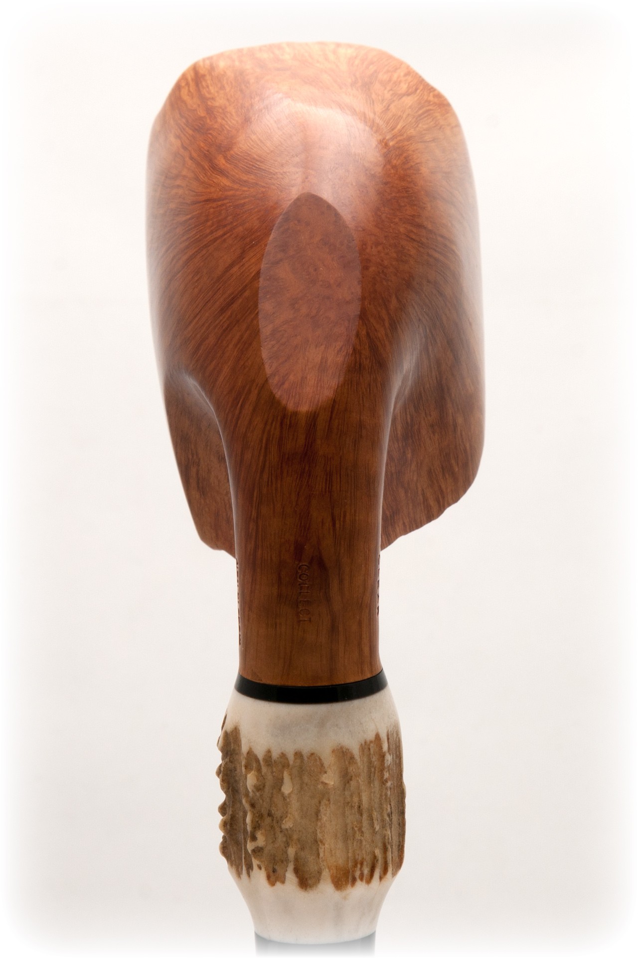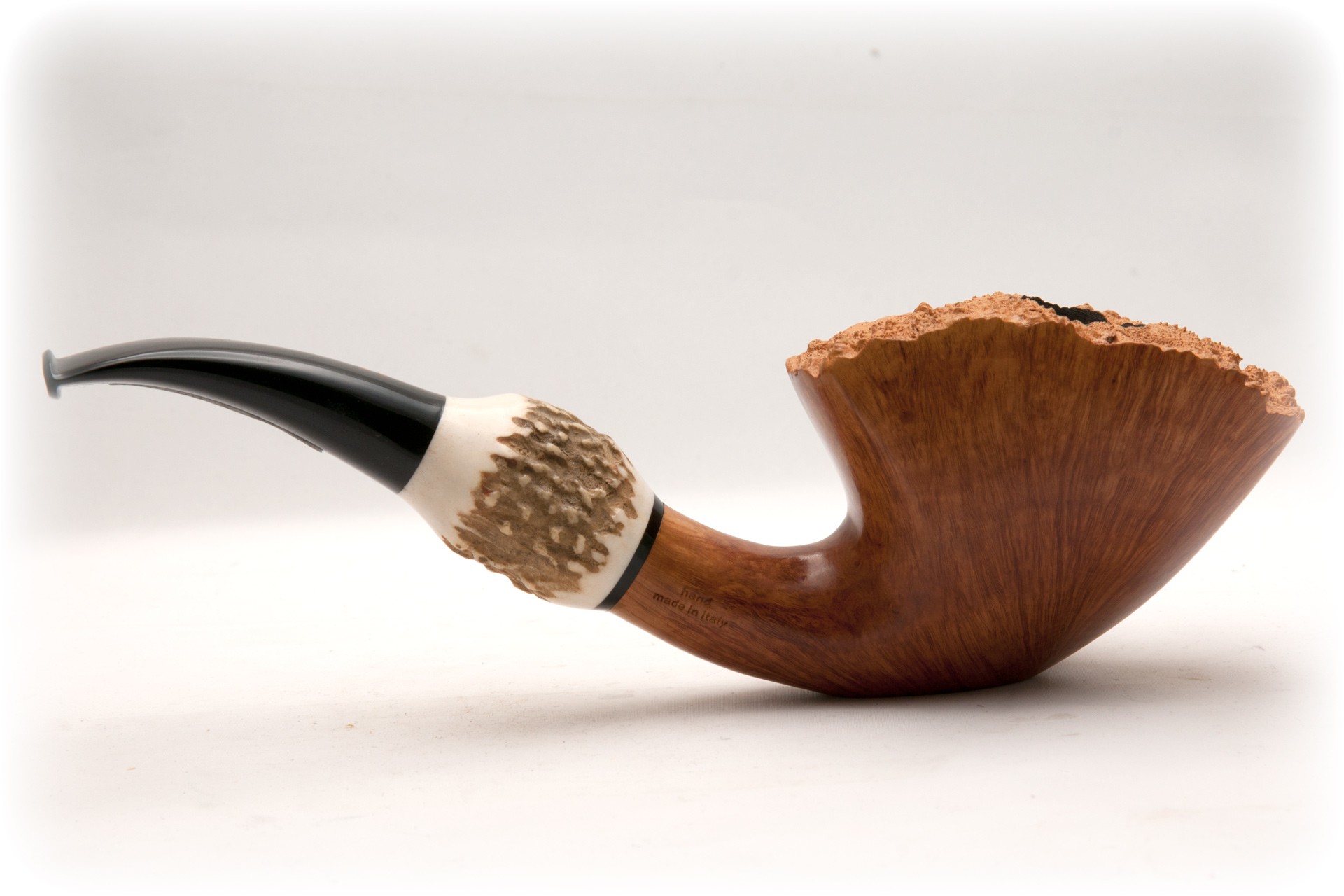 Eine gebogene Bruyèreholz-Pfeife, handgemacht von Radice aus Italien, mit Horn am Mundstück.