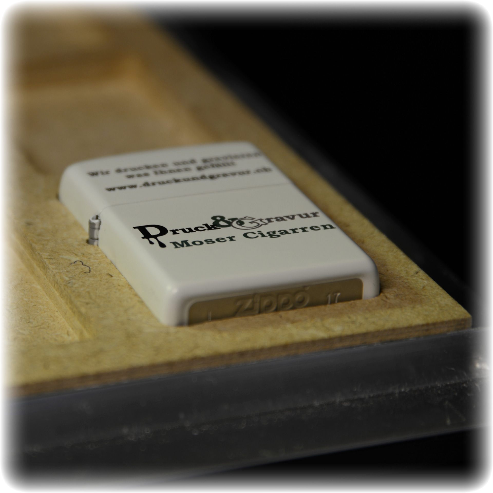 Wir gestalten in unserem Atelier eigene Motive und Logos, diese bedruckten Zippos sind exklusiv bei uns erhältlich.
