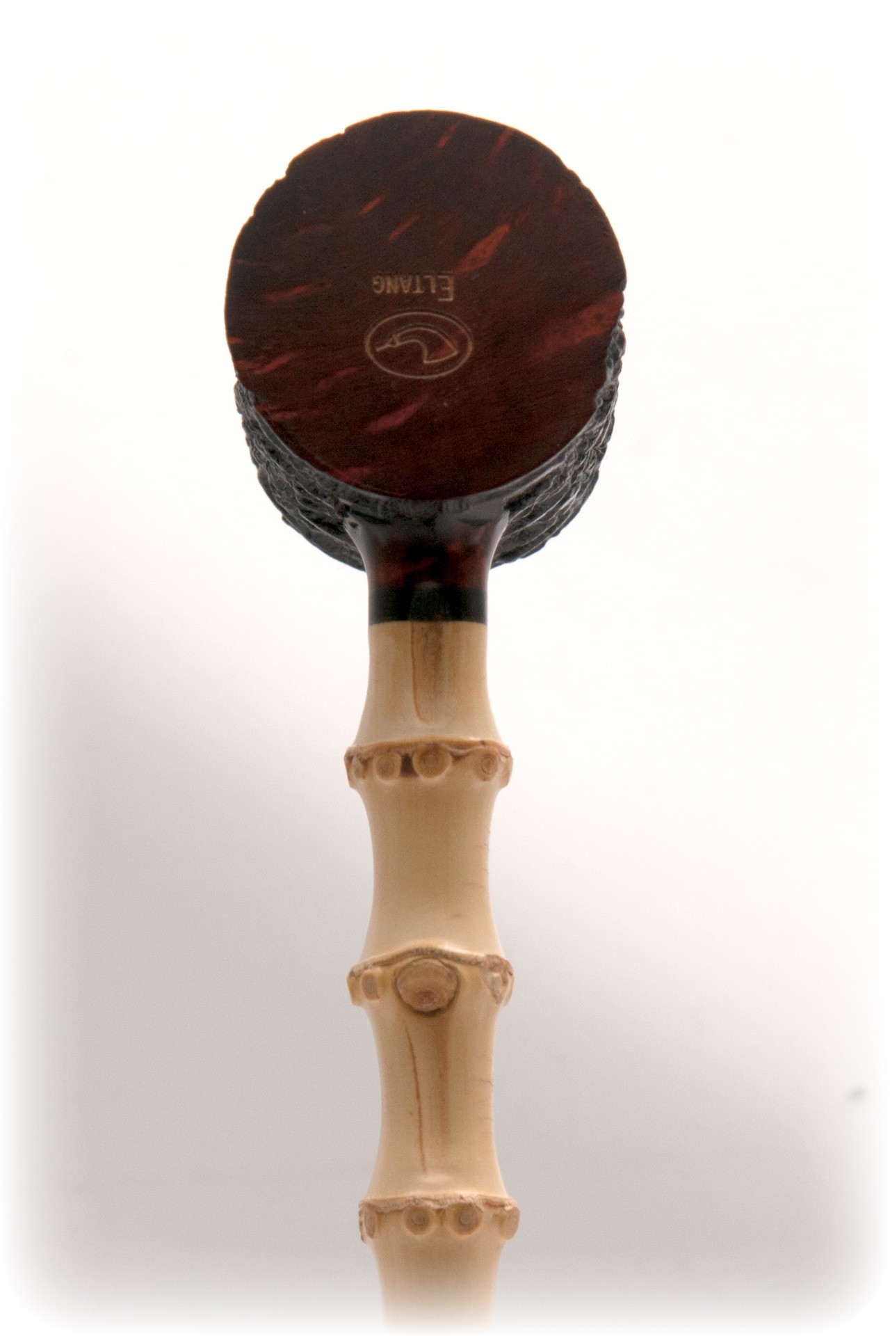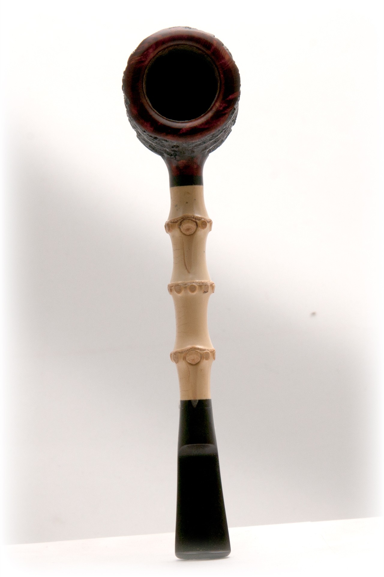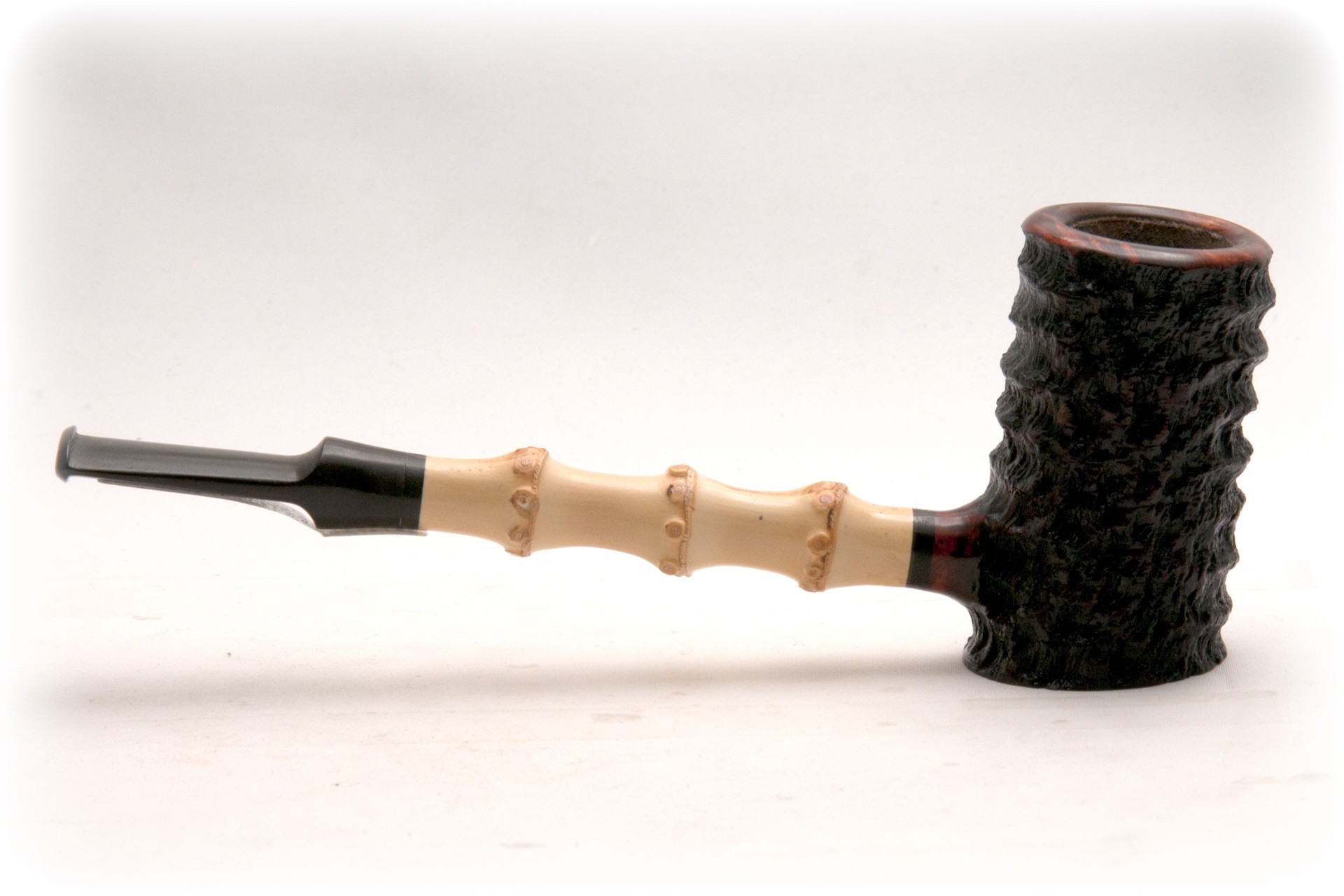 Eine gerade Stand up Poker Bruyèreholz-Pfeife, handgemacht von Tom Eltang aus Dänemark, mit Bambus am Holm