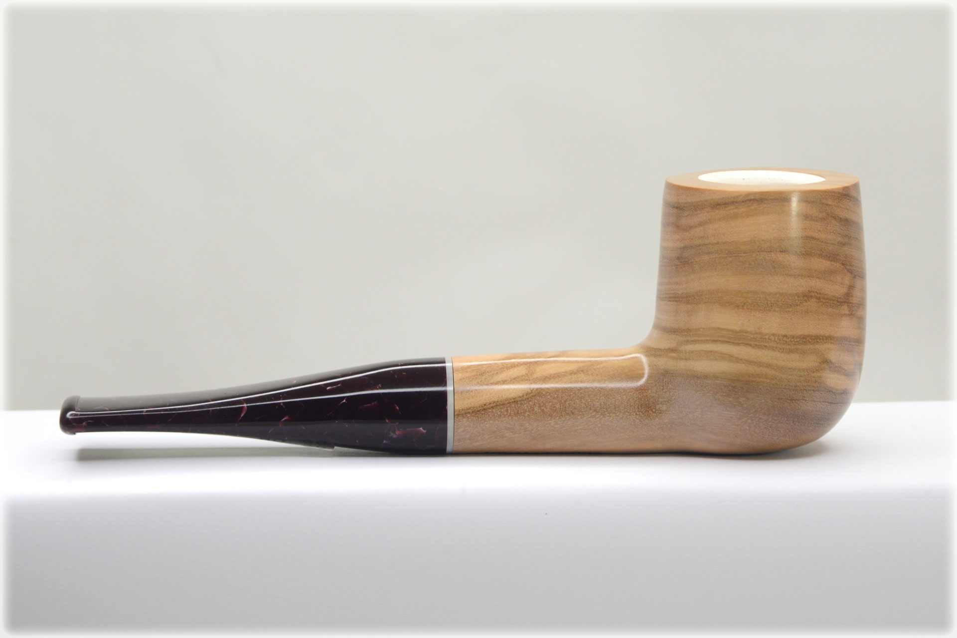 Eine gerade Olivenholz Pfeife mit Meerschaumeinsatz, handgemacht von Volkan aus Italien.