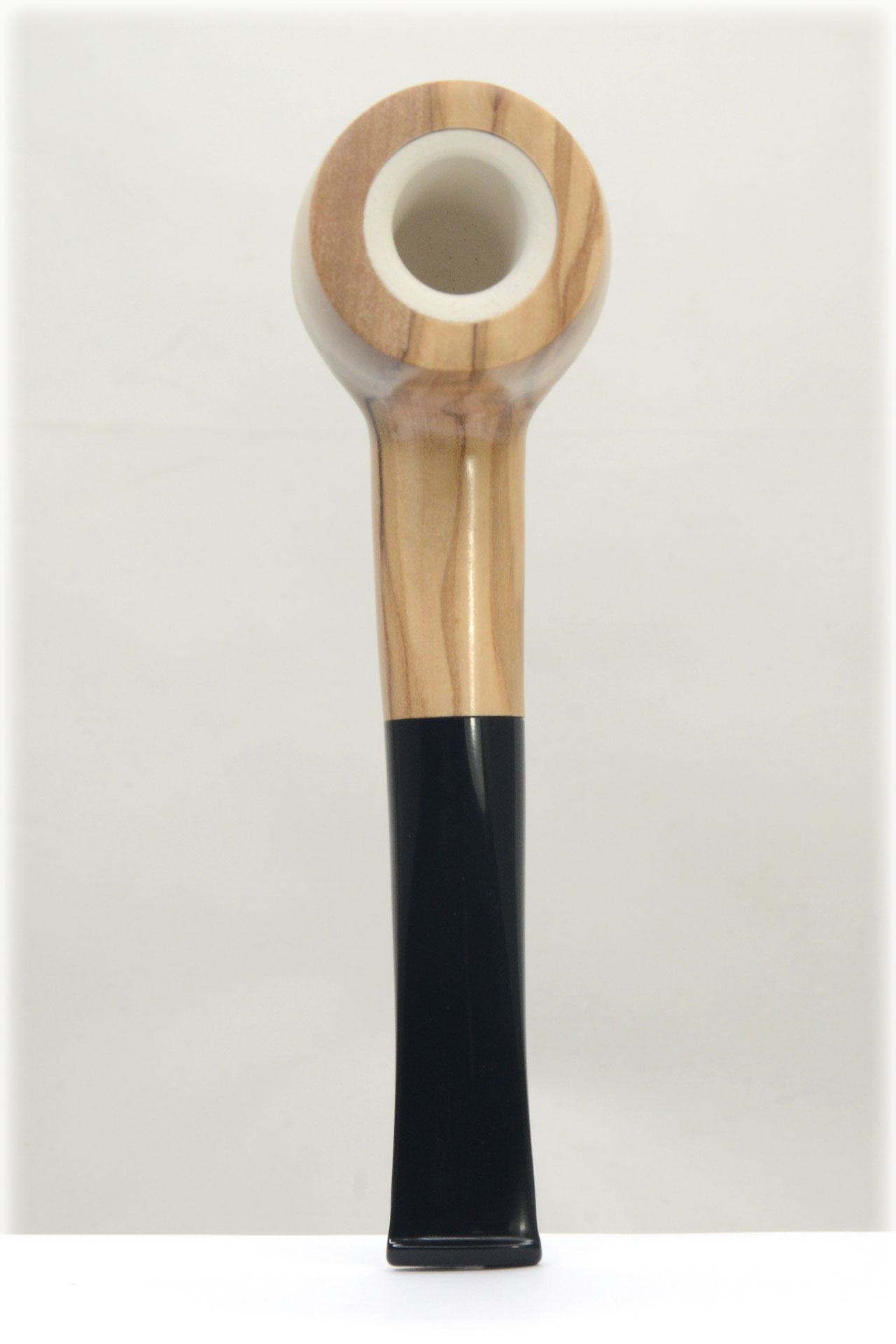 Eine gerade Olivenholz Pfeife mit Meerschaumeinsatz, handgemacht von Volkan aus Italien.