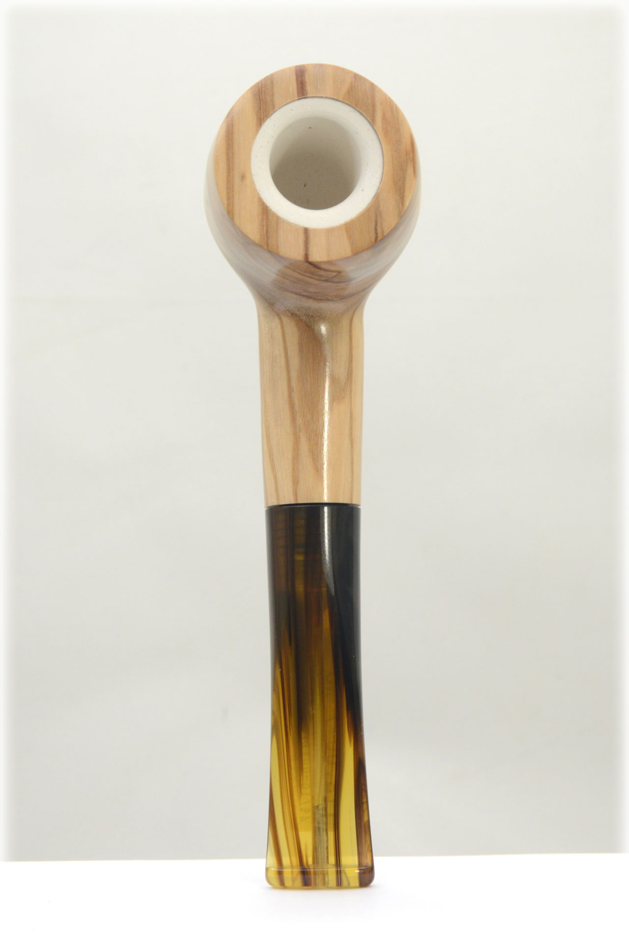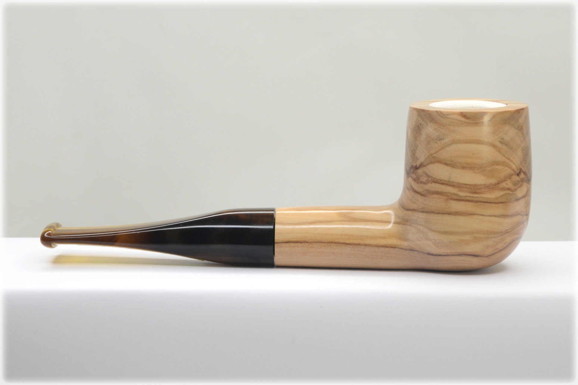 Eine gerade Olivenholz Pfeife mit Meerschaumeinsatz, handgemacht von Volkan aus Italien.